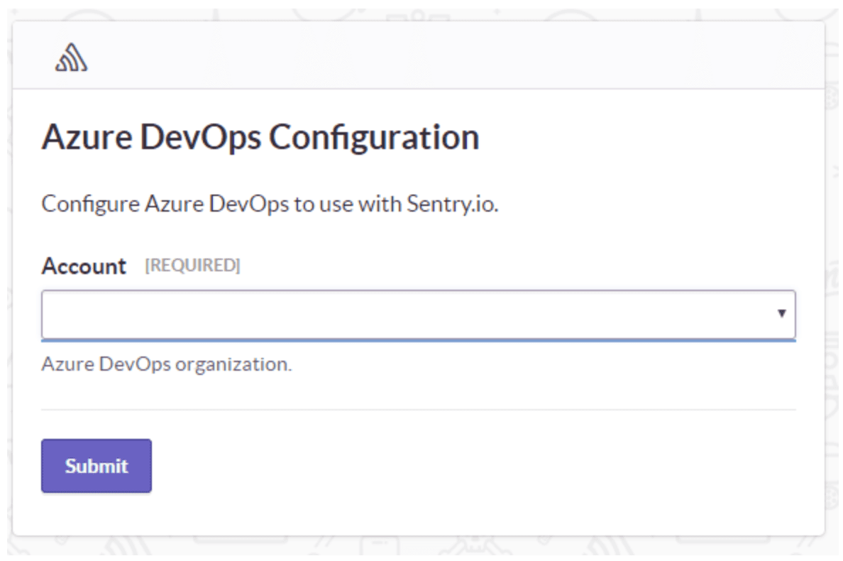 An Azure DevOps install window should pop up. Select the Azure DevOps account you'd like to link with Sentry, and press Submit.